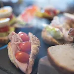 Hver morgen bliver gæsterne mødt med en gratis buffet som serveres på restauranten. Der er flere restauranter, herunder Pizza e Pizza og Ristorante Aquarama, som tilbyder italienske måltider 350 meter væk fra stedet.